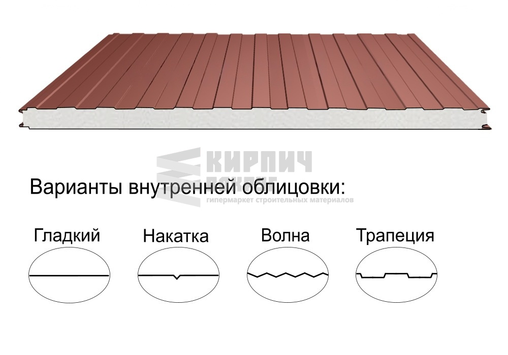 В интернет-магазине "Кирпич Вокруг" Вы можете купить Стеновая трёхслойная сэндвич-панель трапеция 50мм 1190мм с видимым креплением пенополиизоцианурат Полиэстер Металл Профиль в , а наши специалисты готовы вам помочь с выбором по адресу: , или оказать консультацию по телефону: .